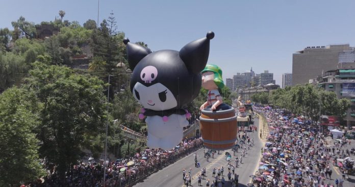 El desfile tuvo este año su recorrido más largo; desde Avenida Providencia a la altura del Metro Salvador hasta la Alameda frente a La Moneda. Entre las veredas colmadas de niños, se desplegaron 13 globos gigantes inspirados en personajes universales como Harry Potter, Sonic, Hello Kitty, Kuromi, Ralf, Marshall de Paw Patrol, Bugs Bunny, Chavo del Ocho, Bluey, Batman, Peppa Pig, Colorito y Las Chicas Súper Poderosas.