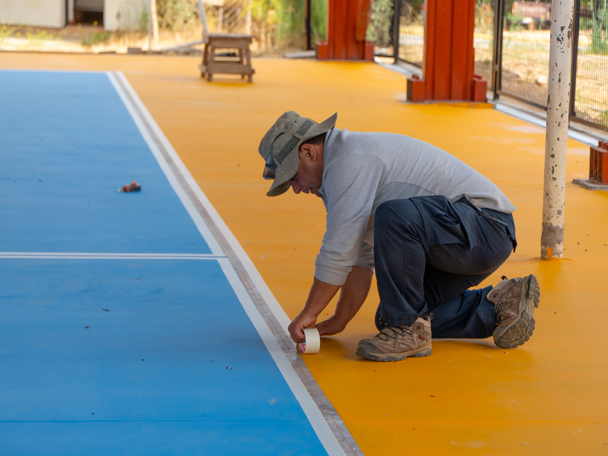 trata de la cubierta de la cancha de la escuela Pahuil en Chanco y el muro de contención